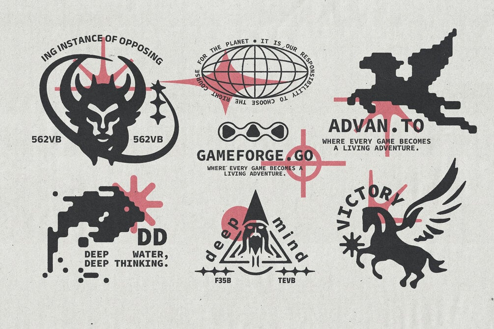 This product gathers high-quality vector 28 editable logo emblems and 37 additional design elements inspired by the Middle Ages, mythology, and geometry.