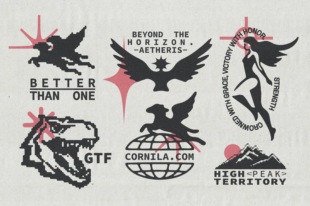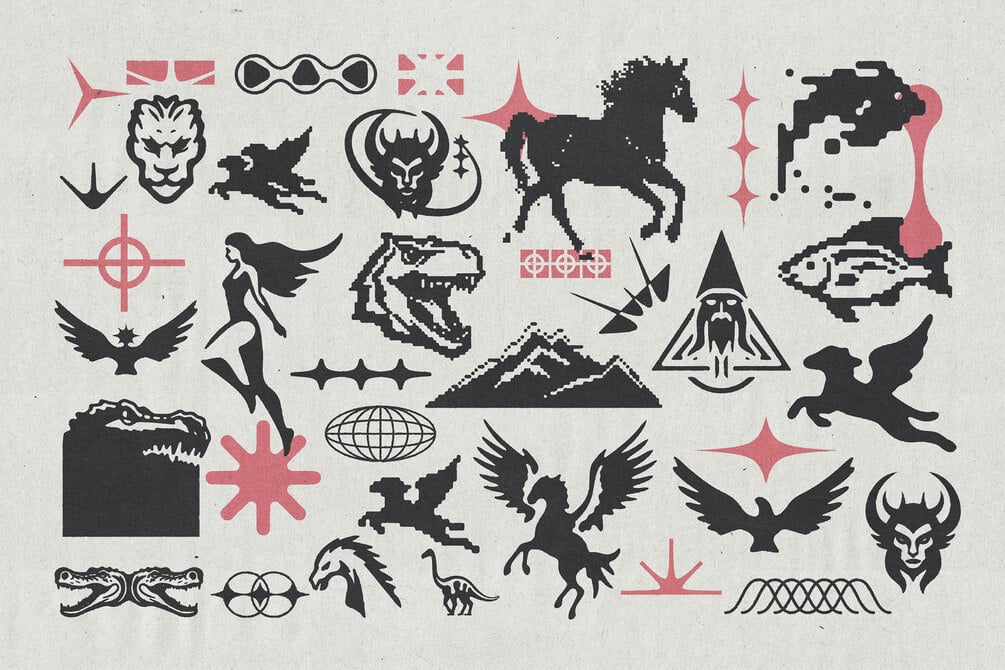 This product gathers high-quality vector 28 editable logo emblems and 37 additional design elements inspired by the Middle Ages, mythology, and geometry.