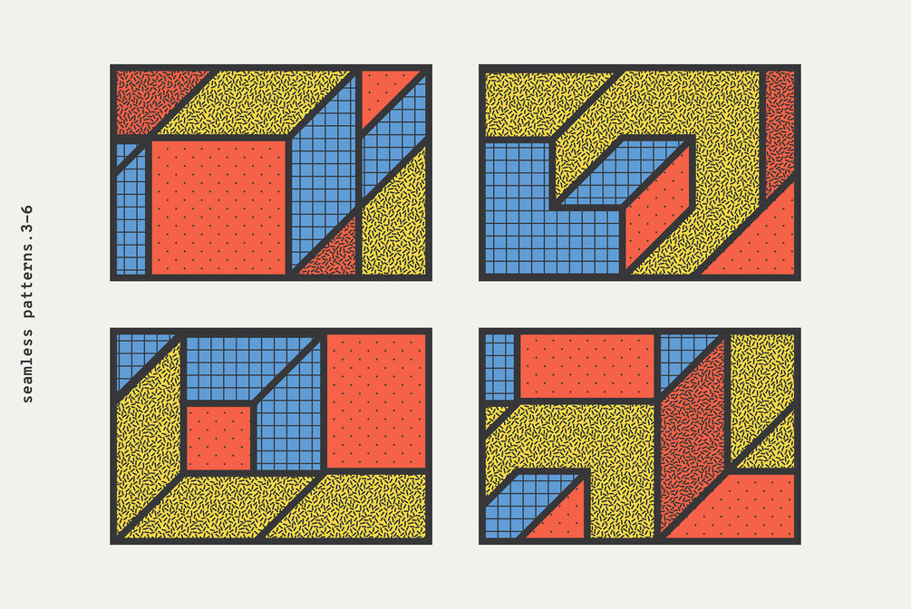Big set "Geometric design. Shapes + patterns" with 100 Geometric shapes, 10 backgrounds, and 10 seamless patterns designed to help you create fresh concepts really fast!